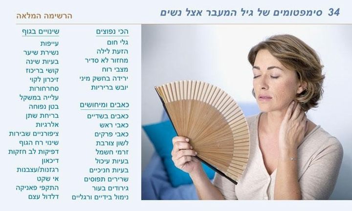 מה קורה לבטן שלך? למה היא נפוחה ולא מעכלת? למה את משמינה למרות שלא החלפת שום דבר בתזונה שלך? למה חם לך כל כך ואת מזיע בלילה? ולמה פתאום ביום? רק לך חם או שחם פה ברמות? המזגן עובד? תפתחו חלון, מיד! ולמה את מתעייפת כל כך מהר? וגב תפוס ומפרקים כואבים.